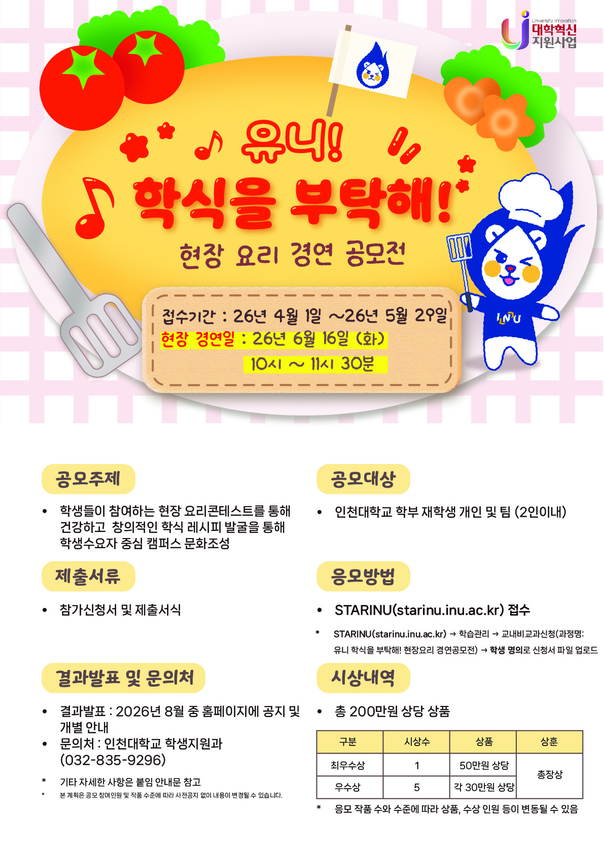 “유니 학식을 부탁해! ”현장요리 경연 공모전 |